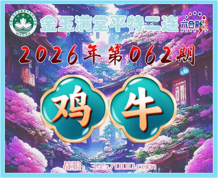 062期:『金玉满堂』  ♣️平特二连 ♣️【鸡牛】开:鸡46,牛06