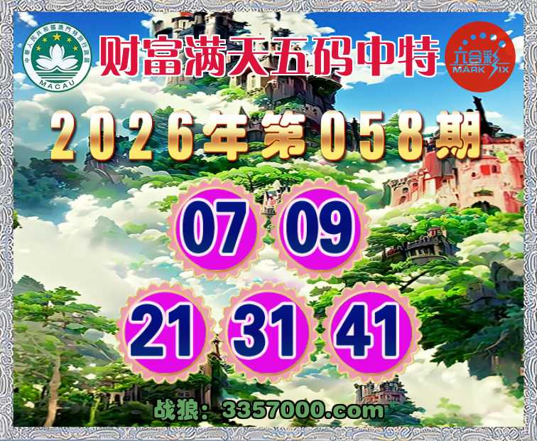 058期:【财富满天】 🍒五码中特🍒【07.09.21.31.41】开:31